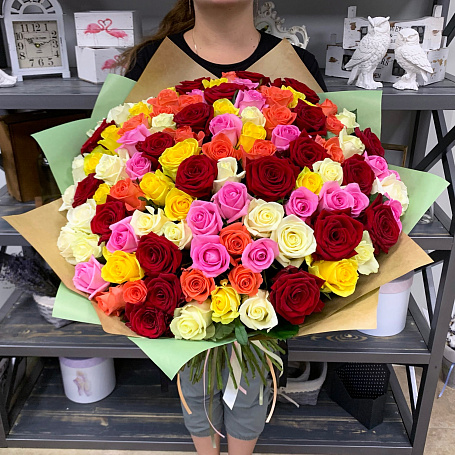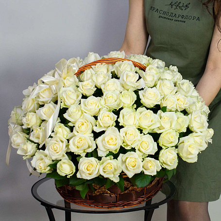 Компания «КраснодарФлора» доставляет букеты в коробках, прозрачных вазах и корзинах, которые сохраняют свежесть цветов. Заказать букет из 101 розы можно с доставкой по Краснодару 24/7.