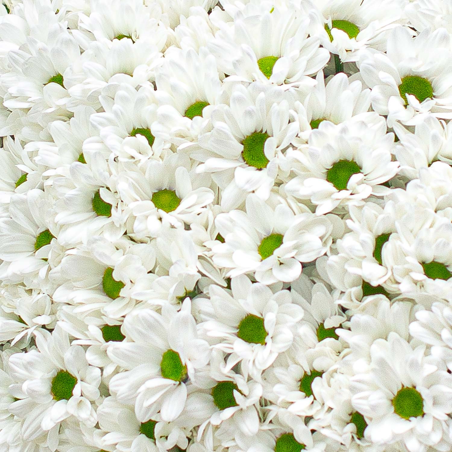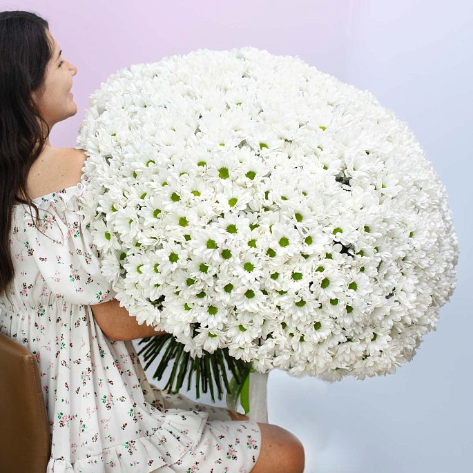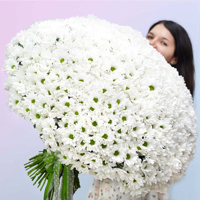 Белоснежное облако из 101 ветки кустовой хризантемы — эффектный и масштабный подарок, который невозможно не заметить.