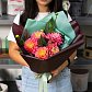 Букет из 5 георгин, зелени в упаковке дизайнерская пленка.Примерный размер букета: 25*25 см