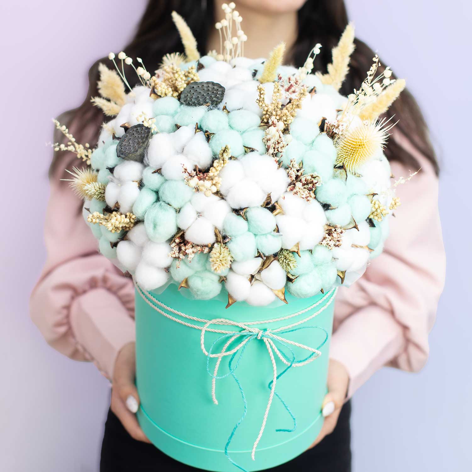 🌱 Композиция "Хлопковые Облака" 🌱Нежная коробка с натуральным хлопком, создающая уют и гармонию в интерьере.