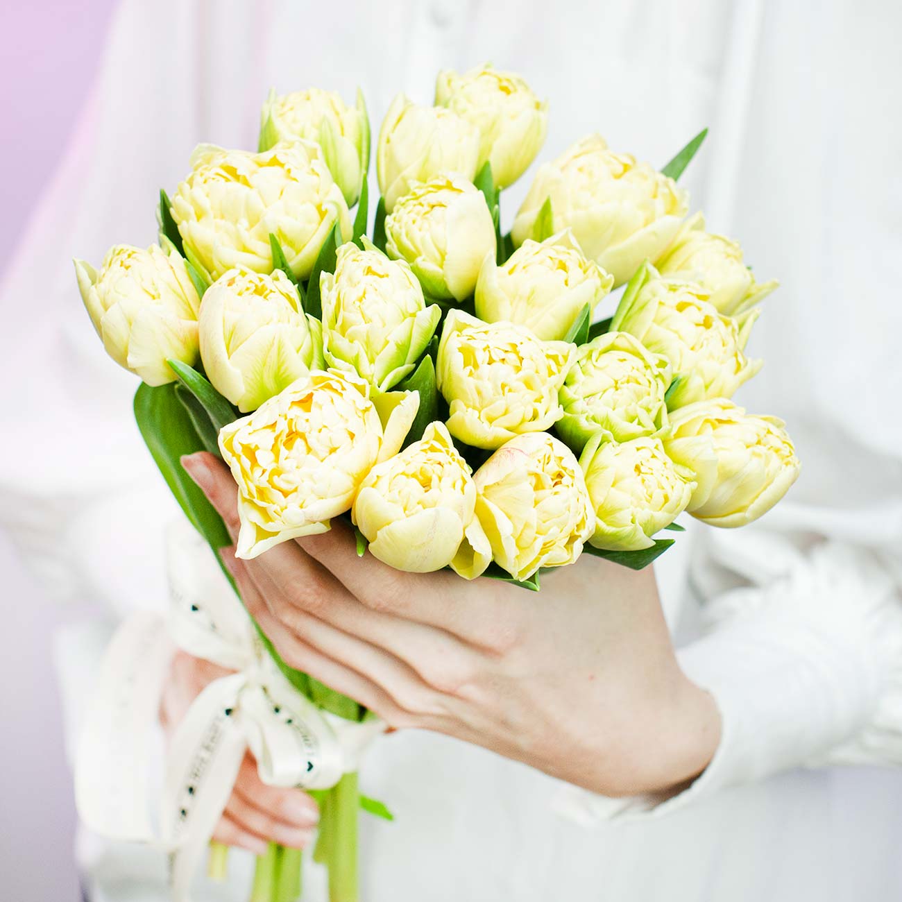 Букет из 19 кремовых пионовидных тюльпанов