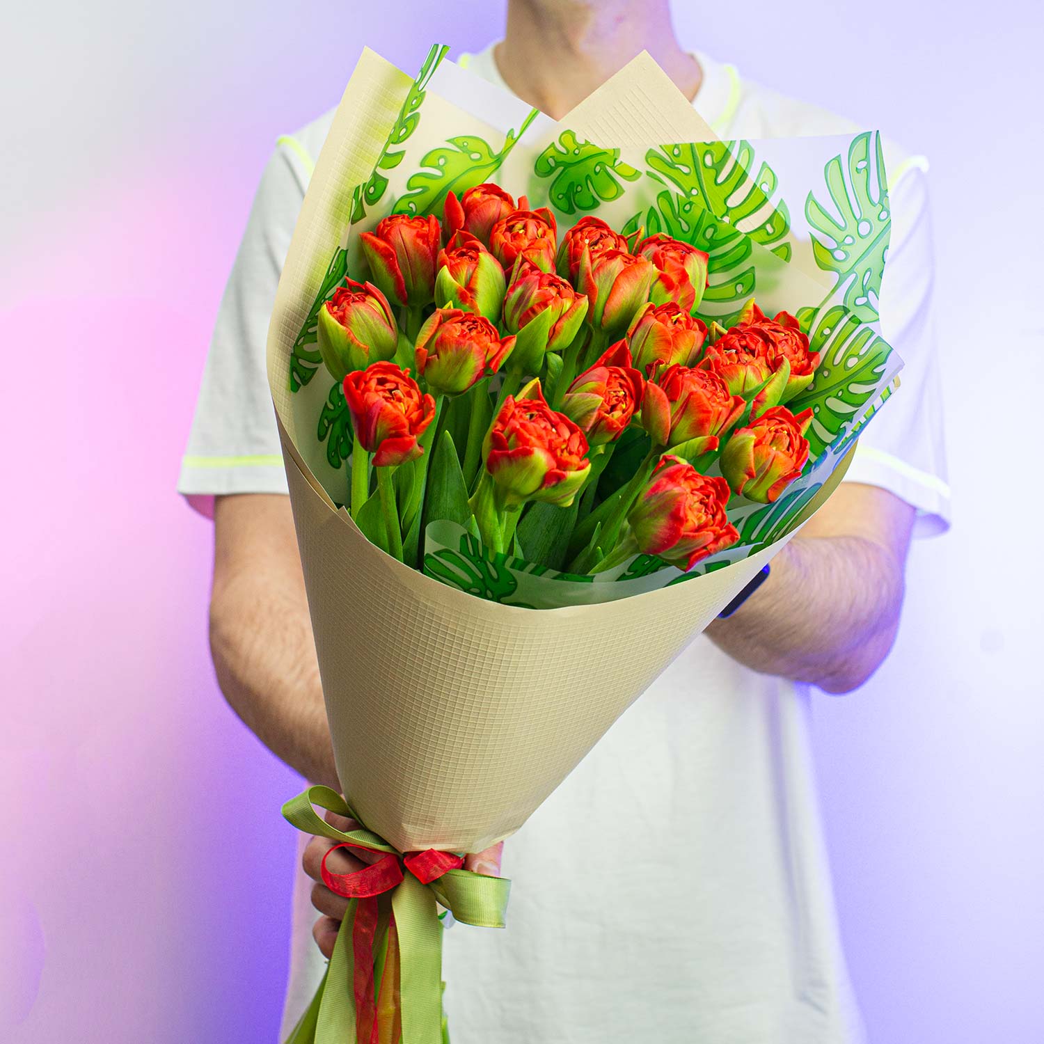 Яркий букет с упаковкой из крупных пионовидных тюльпанов!Ограниченное предложение!