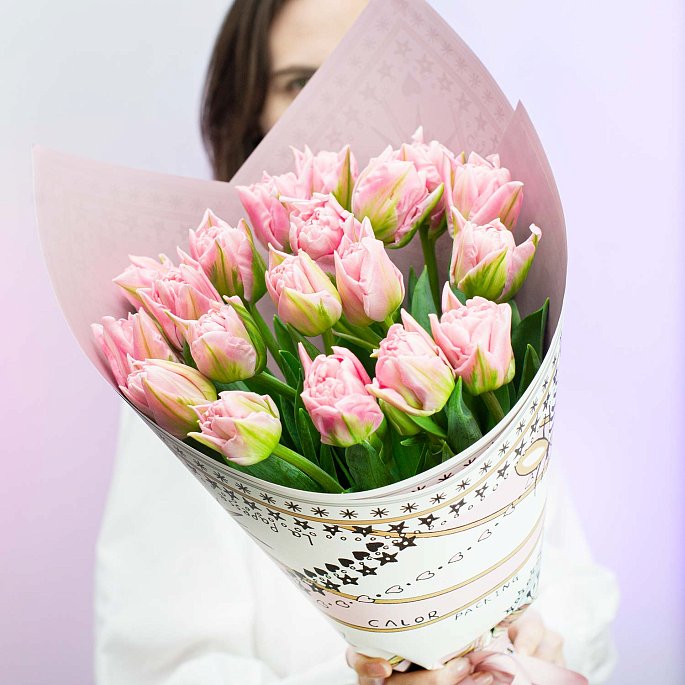 Букет из 19 розовых пионовидных тюльпанов