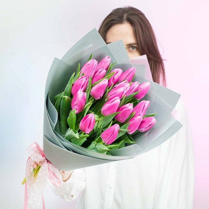 Букет из 19 розовых тюльпанов