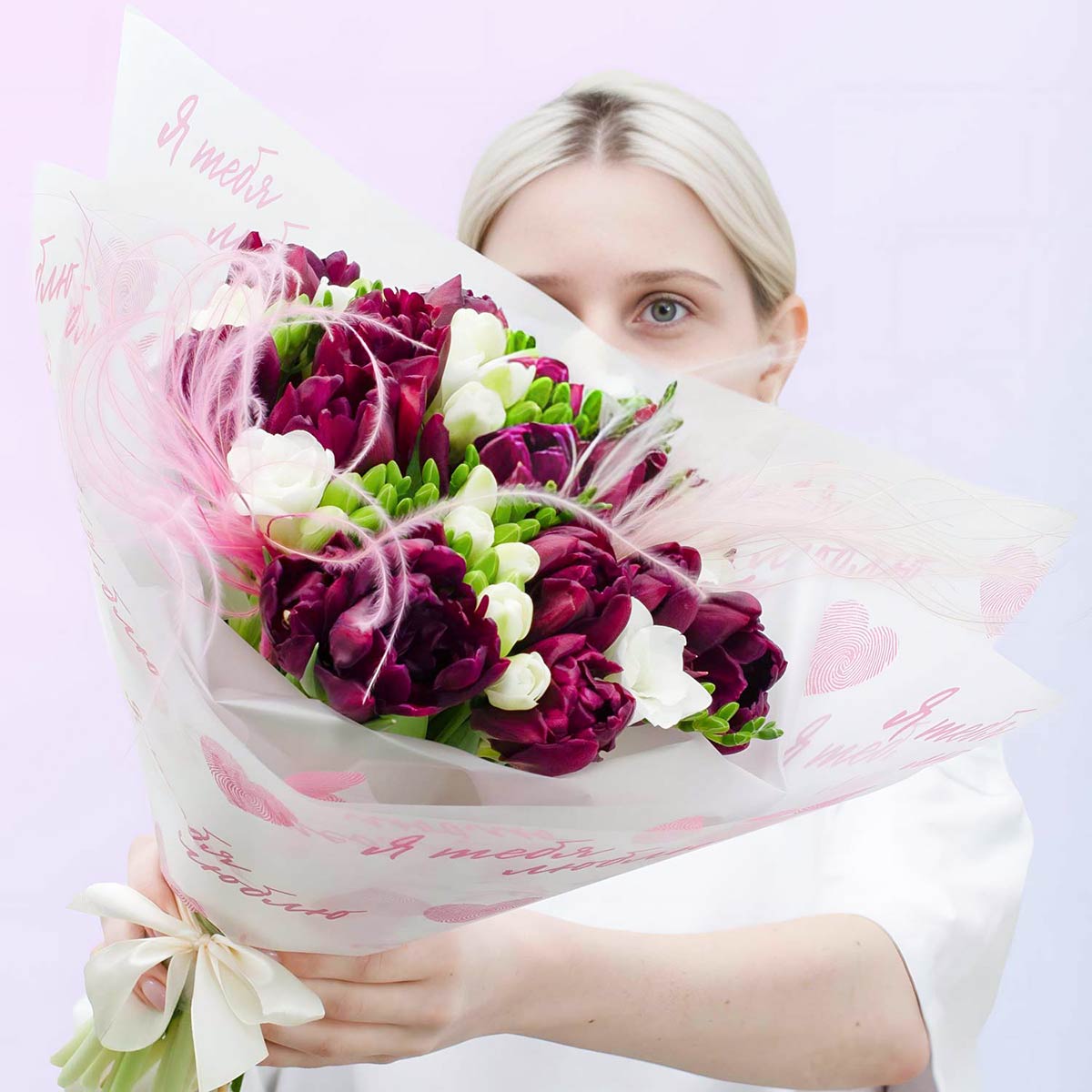 Совет флориста по уходу: Тюльпаны и фрезии любят прохладу. Ставьте букет в холодную воду (можно добавить лед) и обновляйте срез ежедневно — так цветы простоят максимально долго.