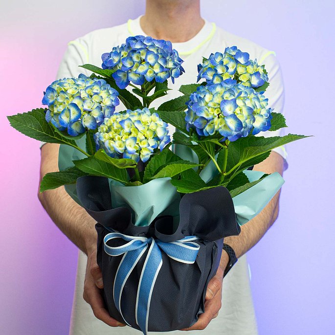 Гортензия голубая в горшке