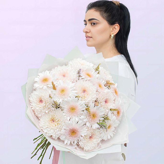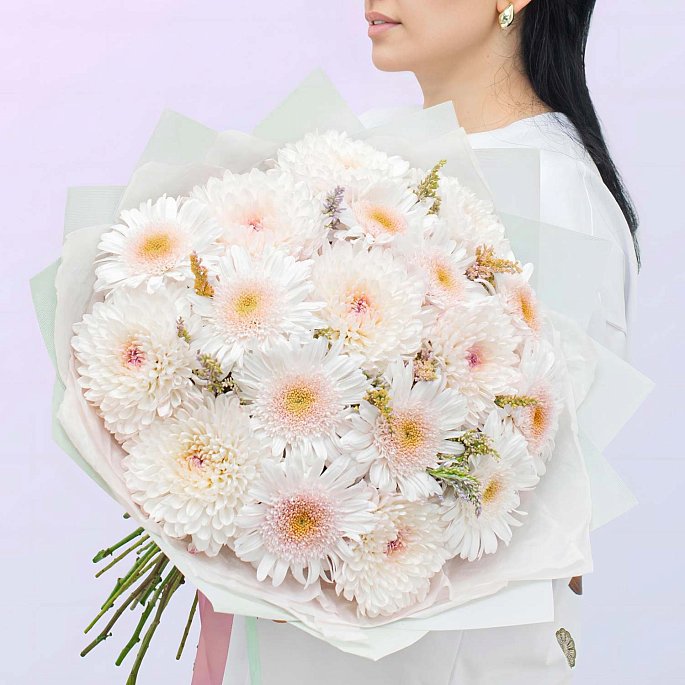 Букет из бело-розовых хризантем — свежий и стильный выбор