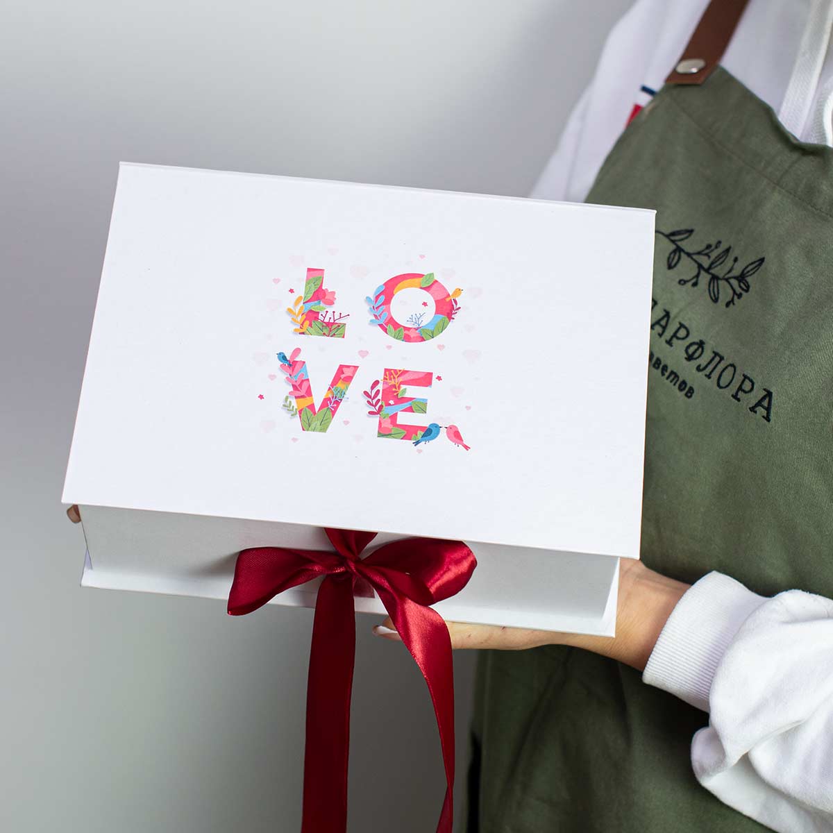Коробочка с атласной лентой и принтом "Love" - 1 шт.