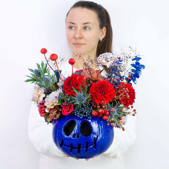 Хотите удивить крутой и необычной осенней композицией в тыкве? Наши флористы делают магические тыквы с ароматными осенними цветами, которые создают волшебное настроение.Мы указываем примерный состав, потому что каждая композиция полностью индивидуальна.