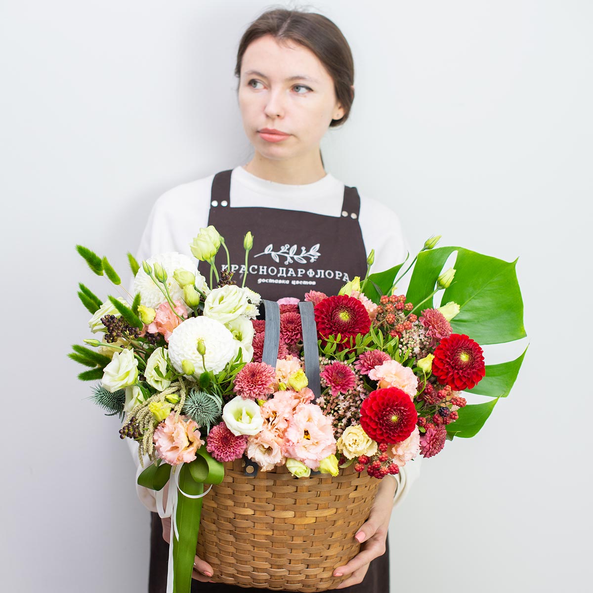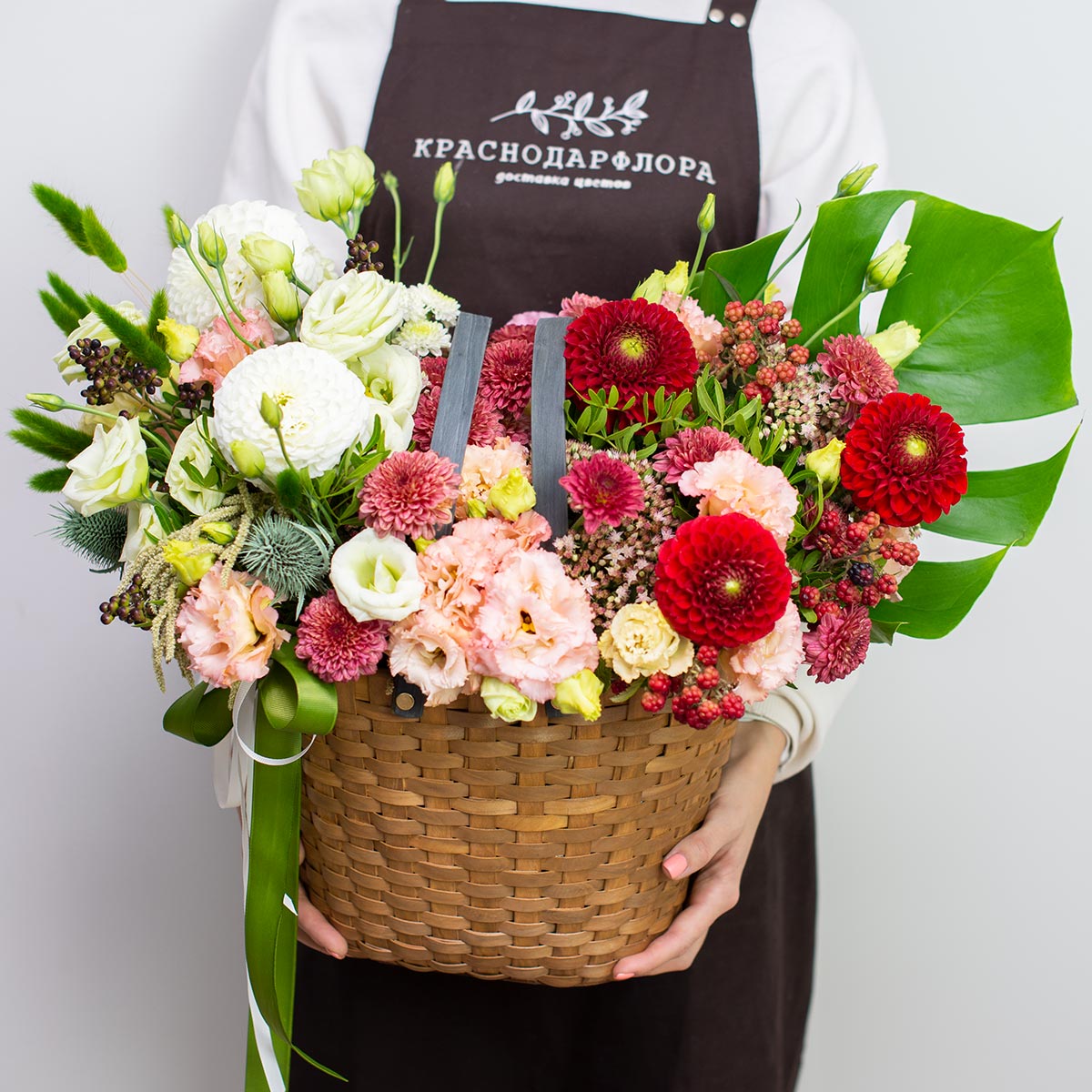 Осенняя корзина с градиентом от белых оттенков к ярко-красным.Примерный состав*: