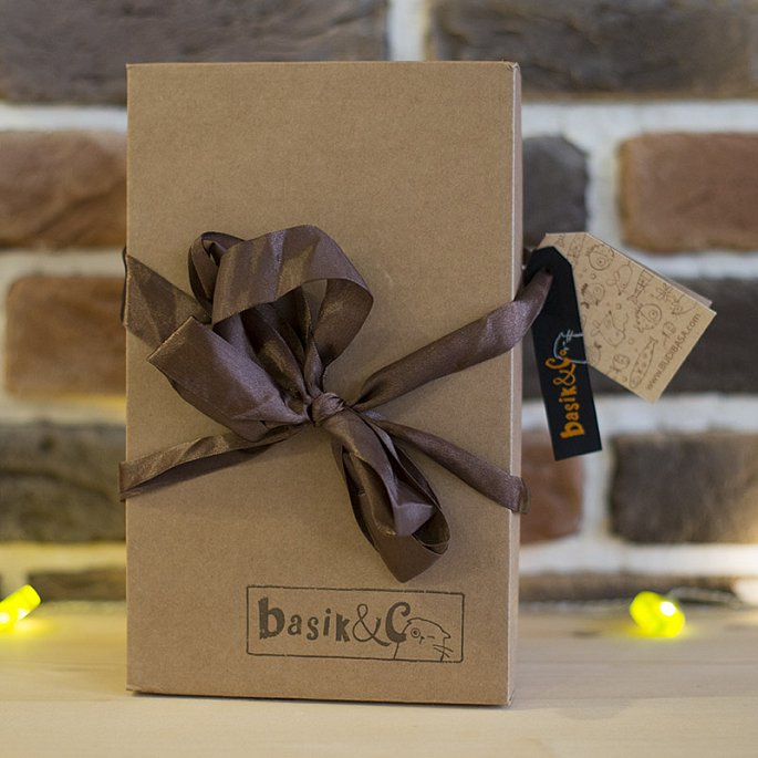 Кот Басик с красным бабочкой-бантом. Специальная стильная крафтовая упаковка с атласным бантом.Примерная высота игрушки: 22-25 см.