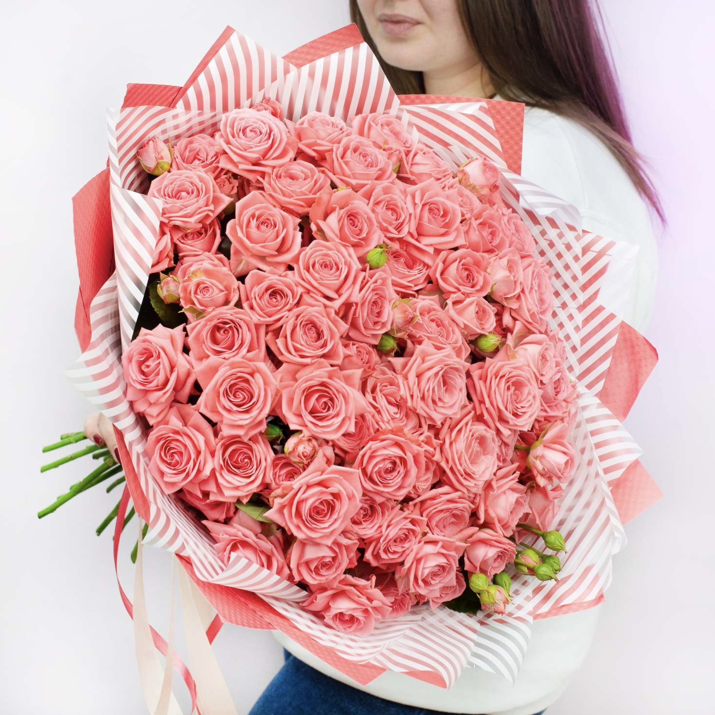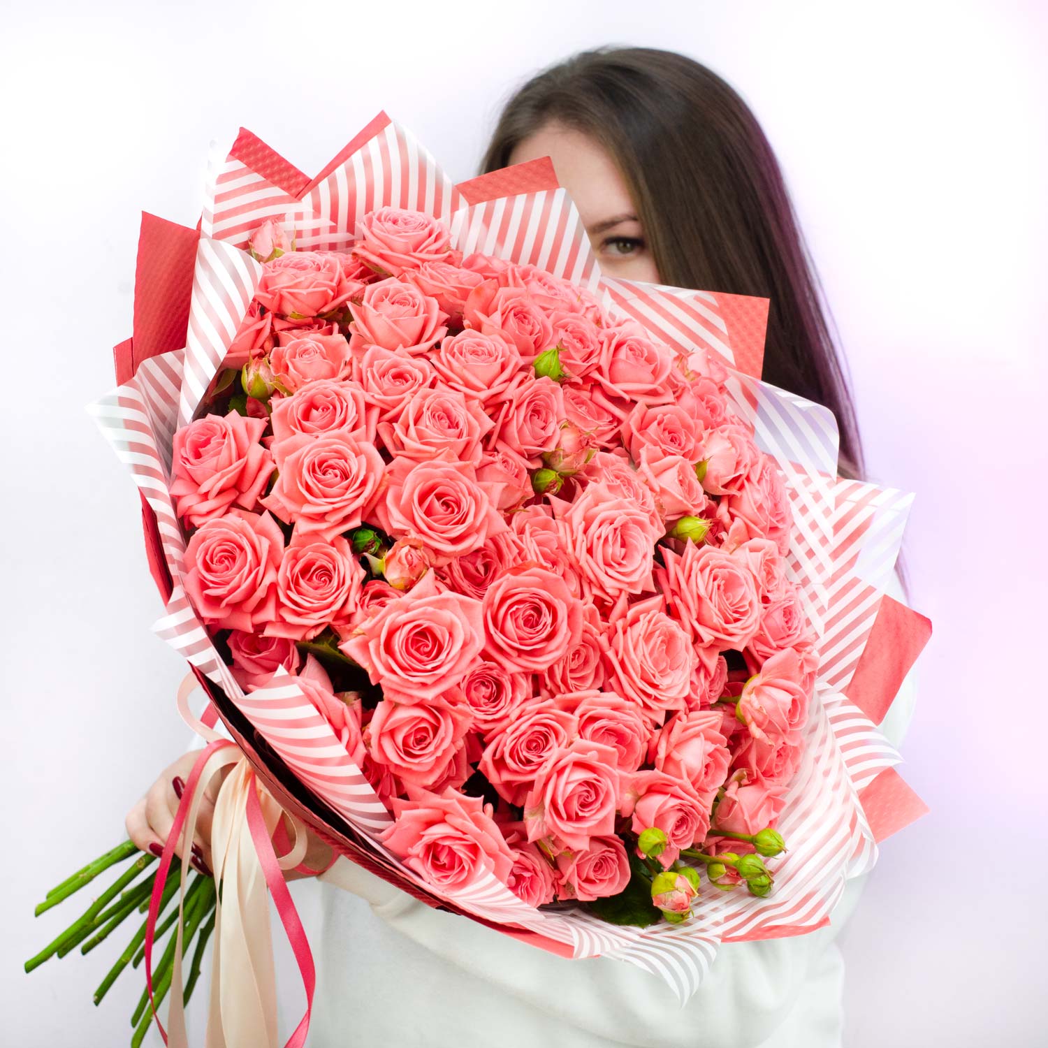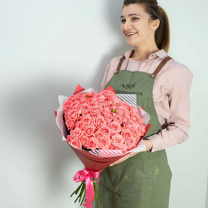 Букет из 19 кустовых коралловых роз "Барбадос"