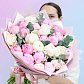 💖 Этот букет стоит добавить в Избранное! 💖Представляем вам роскошный букет из 25 белых и розовых пионов с нежными веточками эвкалипта. Эта композиция сочетает в себе элегантность, свежесть и утонченность, идеально подходя для самых трогательных моментов.