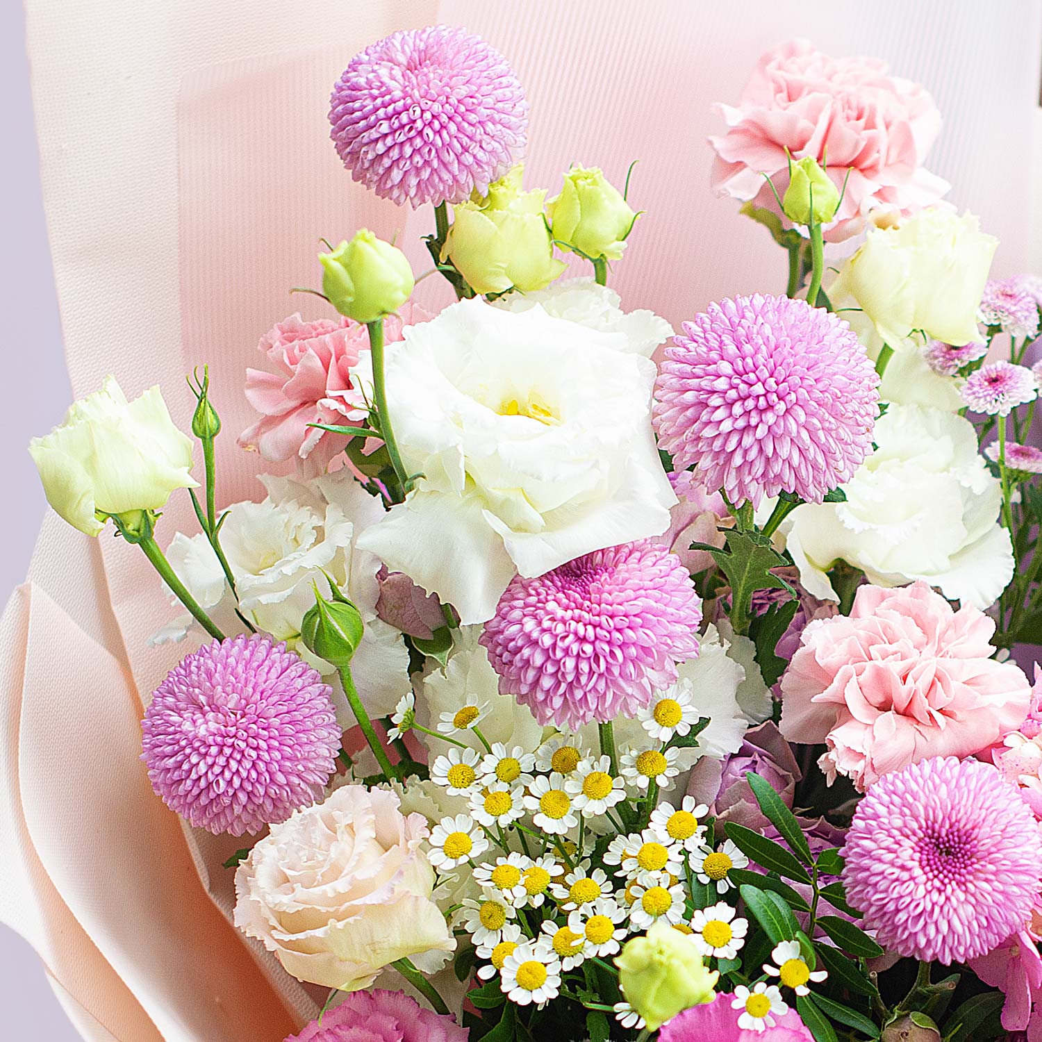 🌷 Хризантемы в форме шариков: добавляют яркости и игривости композиции;