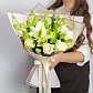 Светлые тона, лилия, роза и эустома. Упаковка букета - дизайнерская пленка.Состав букета: