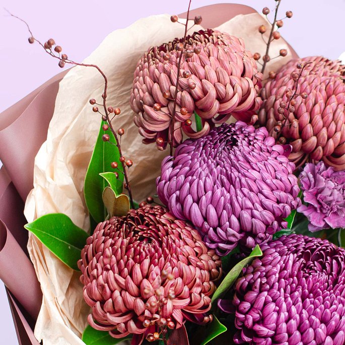 🌷 Хризантемы "Бигуди": отличаются своей оригинальной формой и насыщенным цветом, создают объем и роскошь;