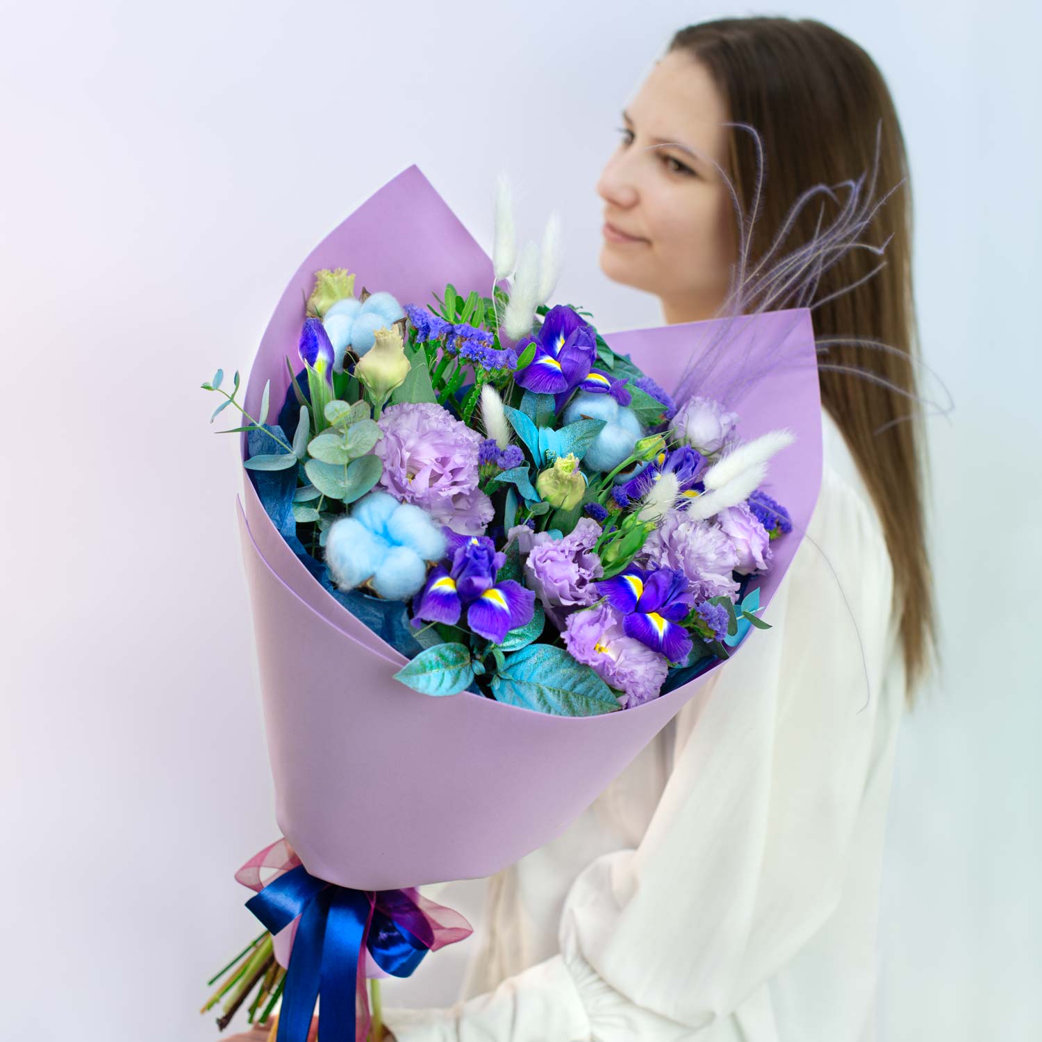 💖 Букет "Яркий момент" 💖"Яркий момент" — это взрыв цвета и аромата, олицетворяющий радость и вдохновение. Сочетание эустомы, ирисов, воздушного хлопка превращает каждый день в праздник.