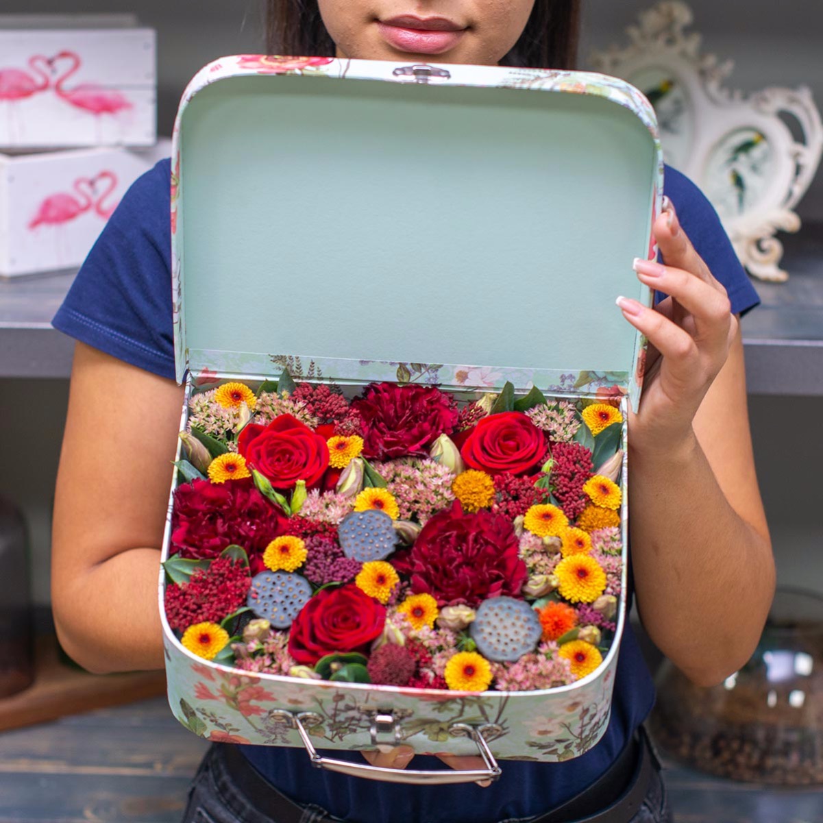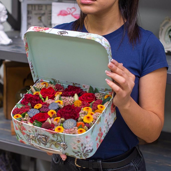 Чемоданчик с осенней гаммой красок.Состав композиции: