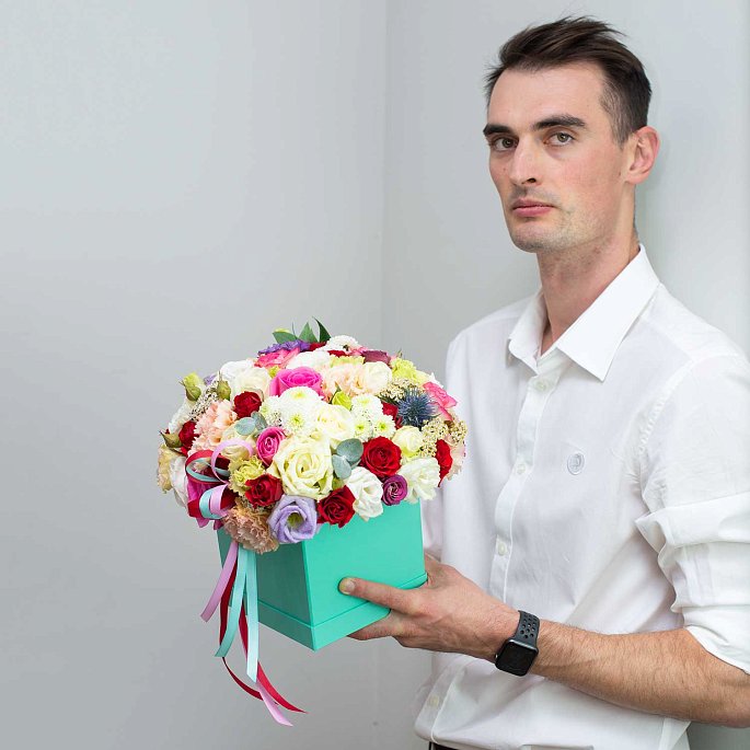 - Если букет в коробке с губкой, подливайте в неё немного воды каждый день, чтобы она не высыхала