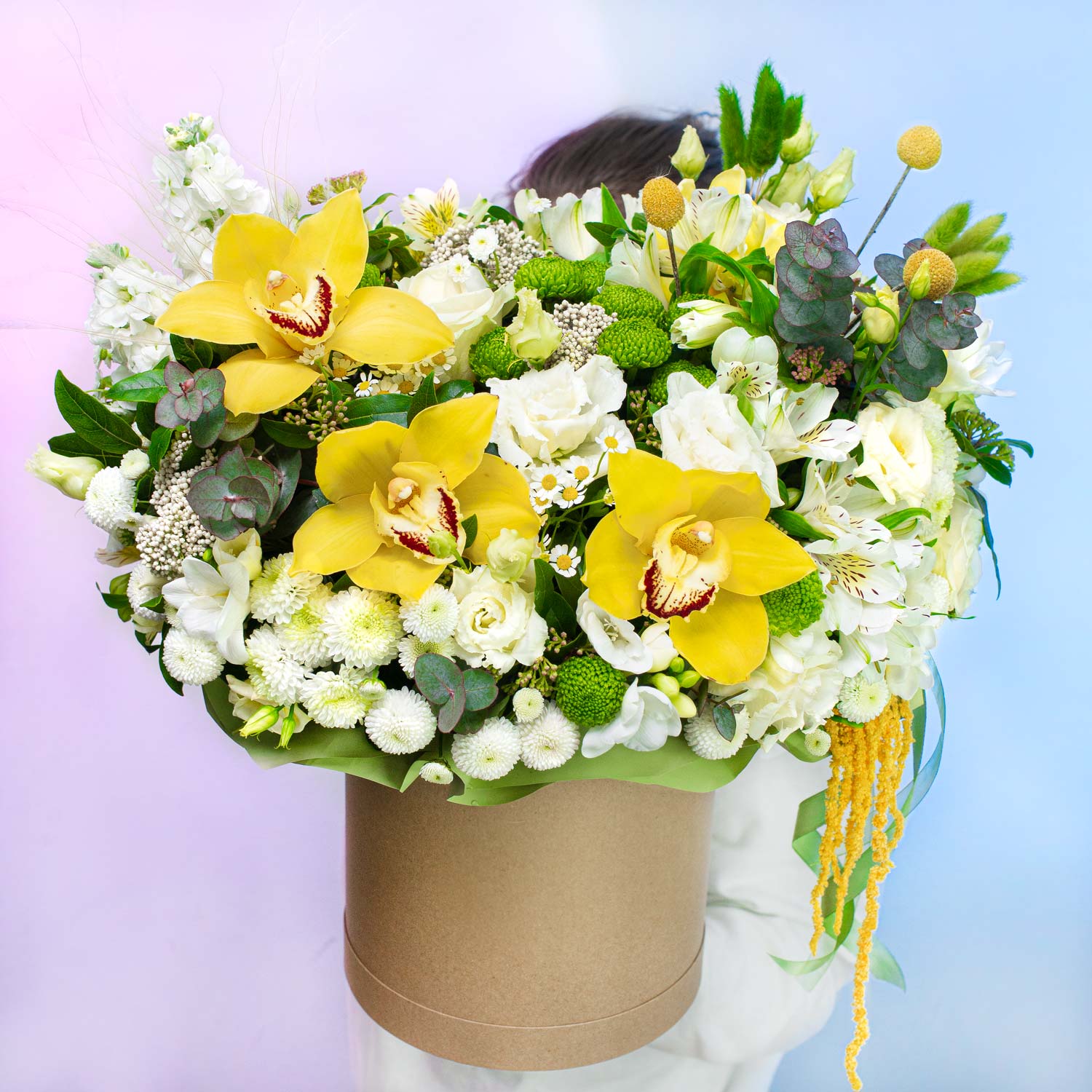 Крафт цилиндр в белых и желтых тонах.Состав цилиндра:
