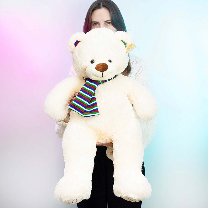 Мишка с полосатым шарфомПримерный размер в сидячем положении 50 см.