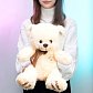 Мишка приятного кремового цвета с элегантным бантом.Примерный размер игрушки: 30 см.