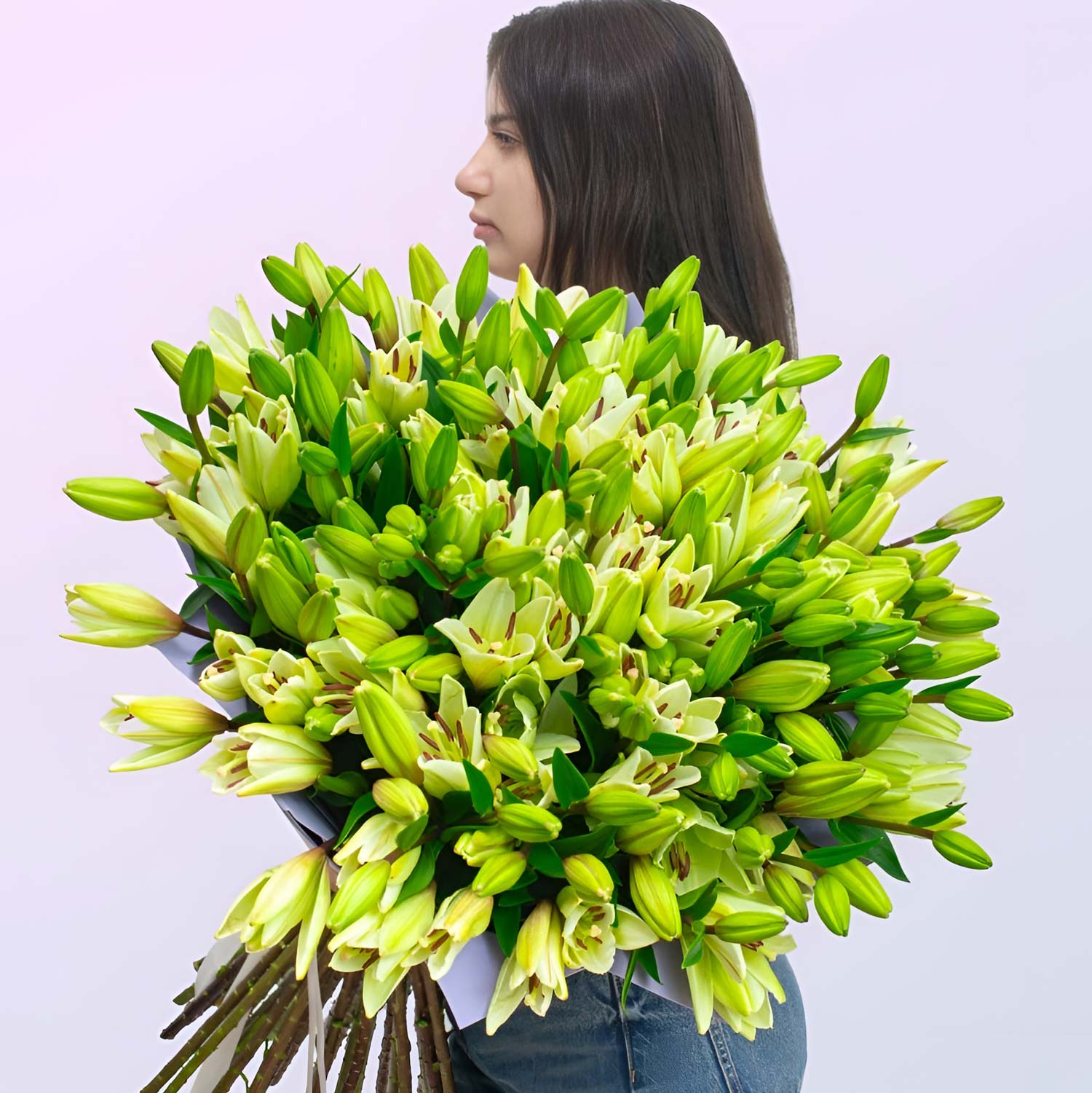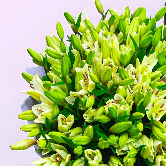 Внушительный и чистый по настроению букет из 51 белой лилии — символ элегантности и величия.