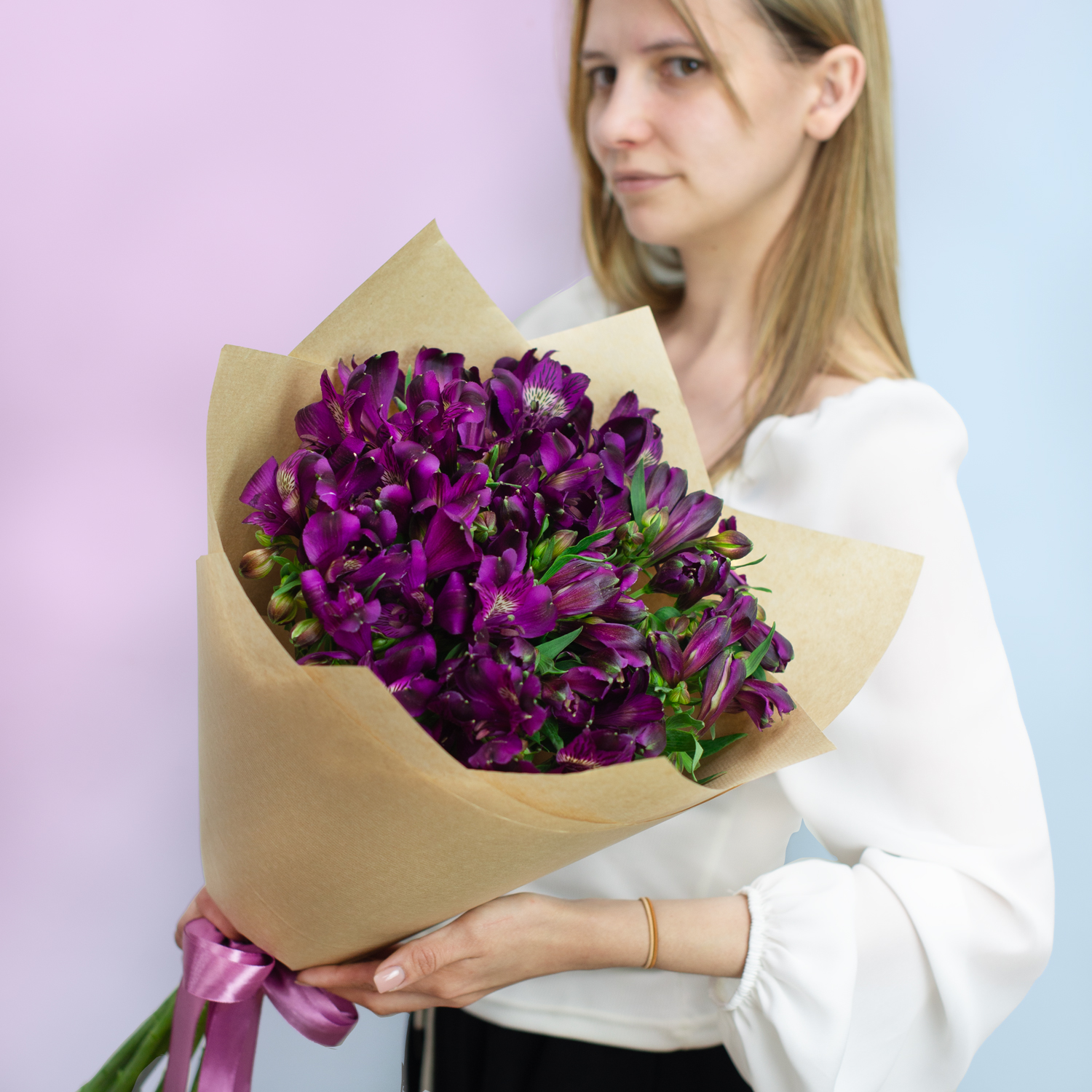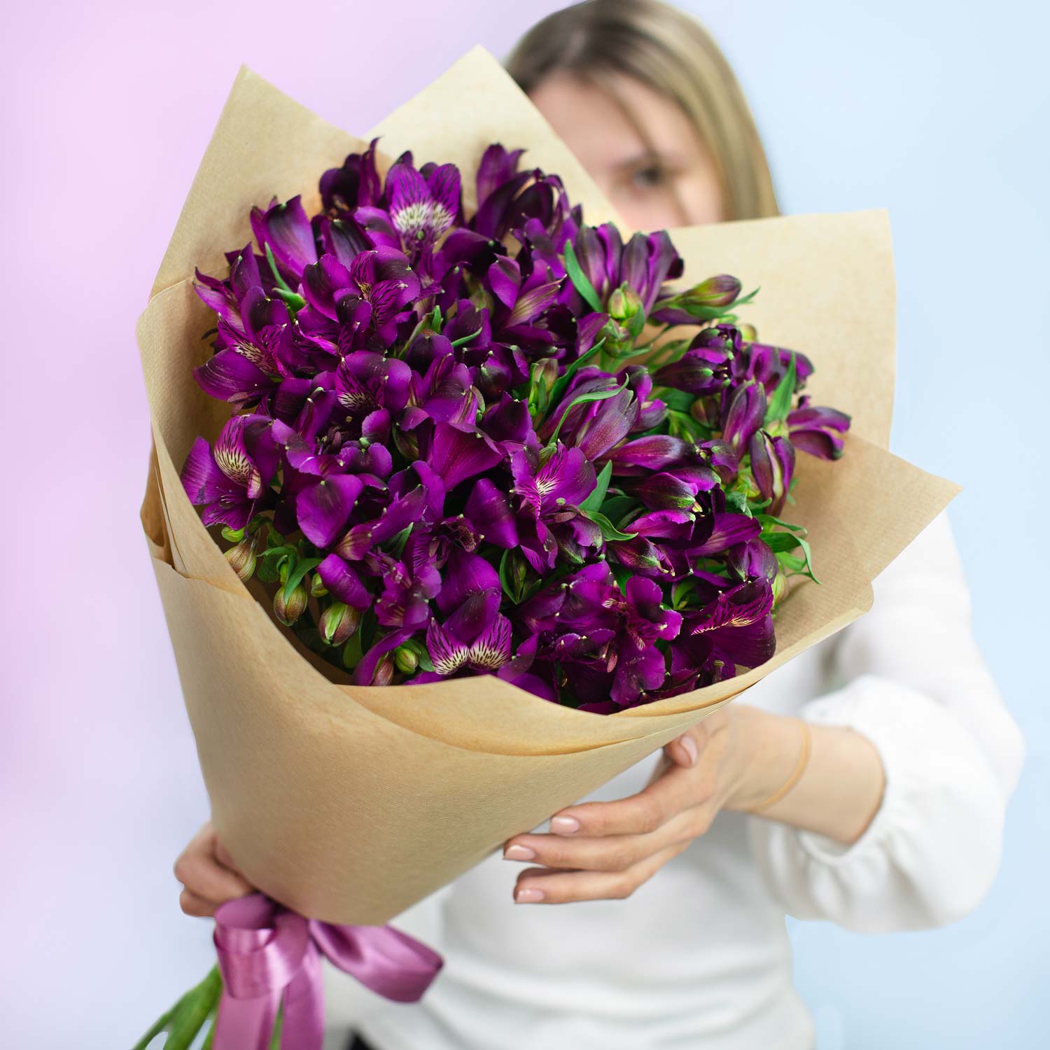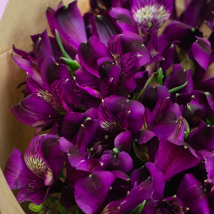 💐 Букет из сочных темно-фиолетовых альстромерий, в контрастной крафтовой упаковке🪄 Преимущества: