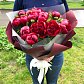 Букет из 15 малиновых пионов в оформлении бумагойРазмер букета: 25*25 см