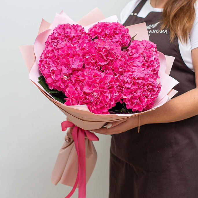 Букет из 7 веток розовой гортензии