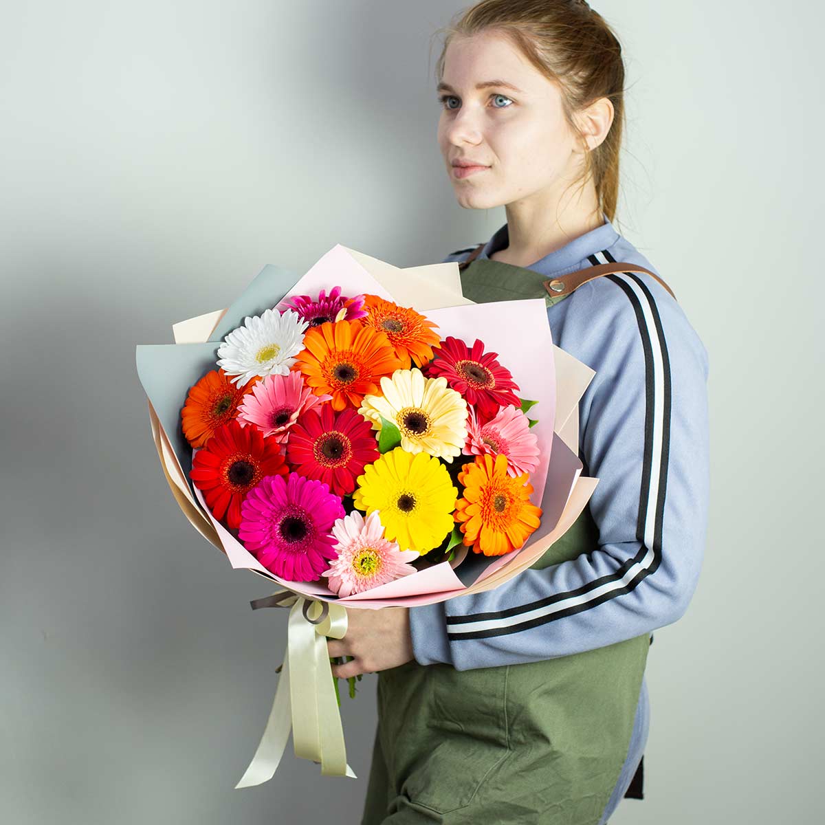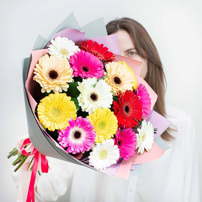 - Герберы разноцветные, 15 шт.