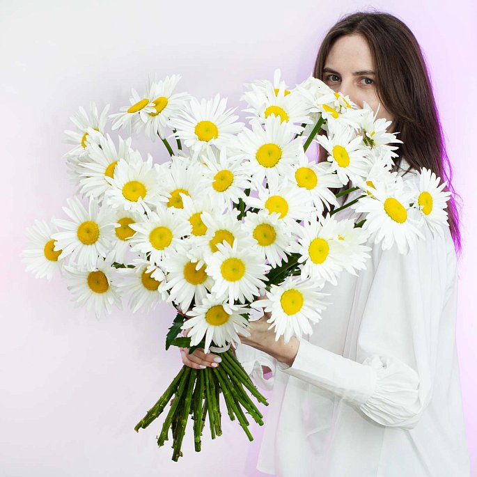 Наши любимые крупные ромашки. Создают максимально легкое летнее настроение.Цена за указана за 1 штуку.