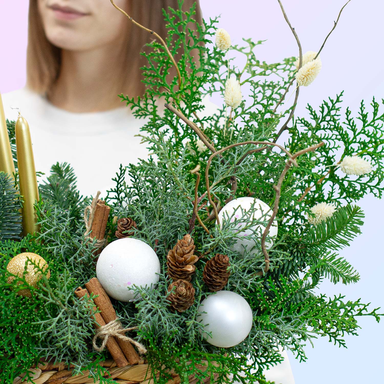 🎁 Ароматная зелень нобилиса и кипариса: наполняет пространство свежим хвойным запахом;