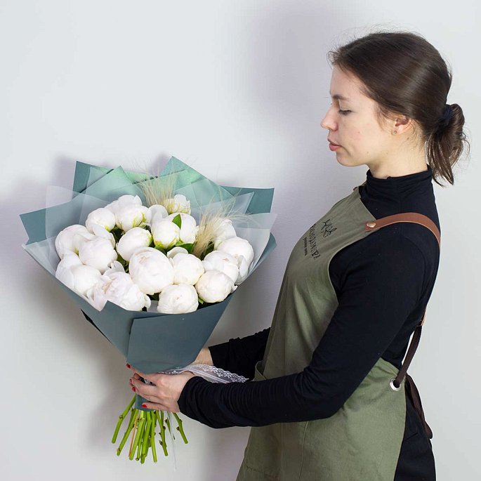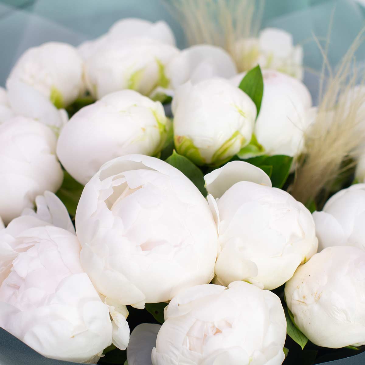 Букет из 19 белых пионов "Duchesse De Nemours"