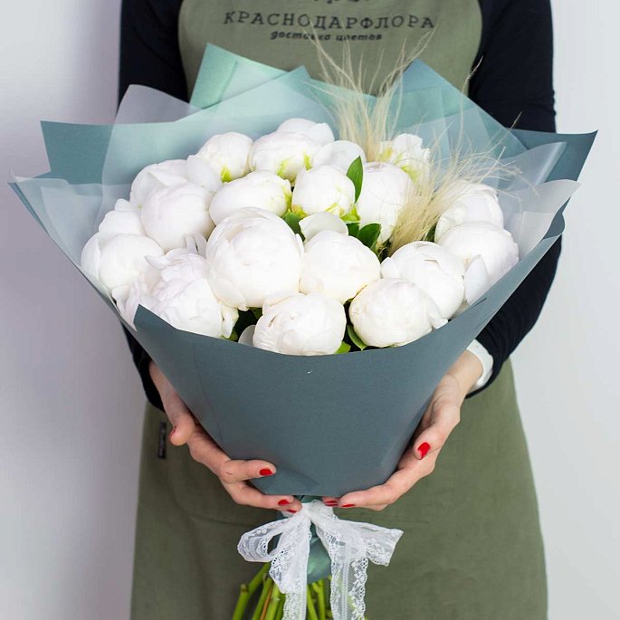 Ура, наконец-то в наличии суперкрупные импортные пионы!Букет из 19 крупных итальянских белых пионов "Duchesse De Nemours"