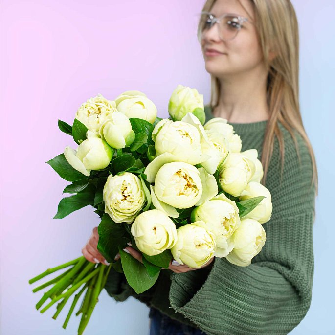 Букет из 19 крупных пионов "Yellow Crown"