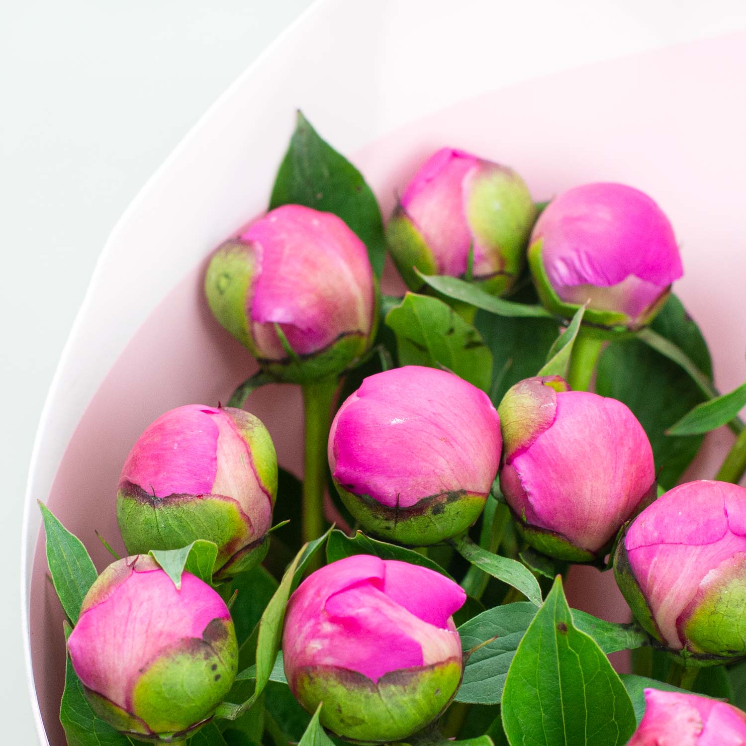 Букет из 19 малиновых пионов. Пионы раскрываются в воде и в комнатной температуре в течение дня. Становятся крупными, яркими и ароматными.