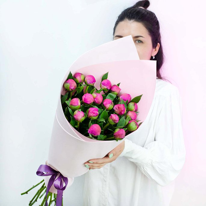 Букет из 19 местных малиновых пионов