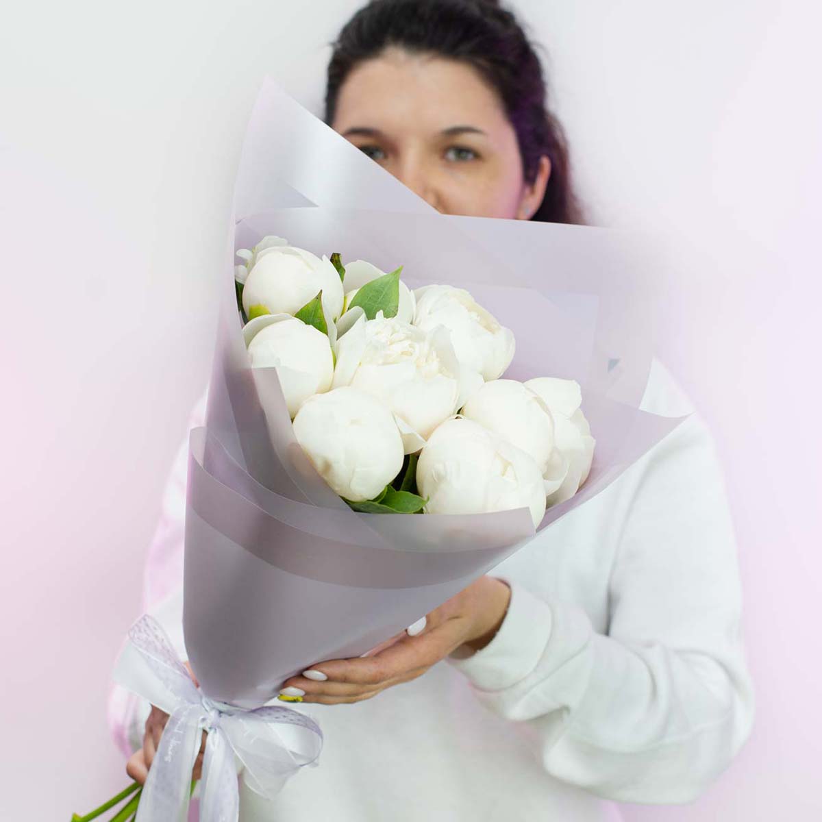 Букет из 9 крупных белых пионов "Duchesse De Nemours"
