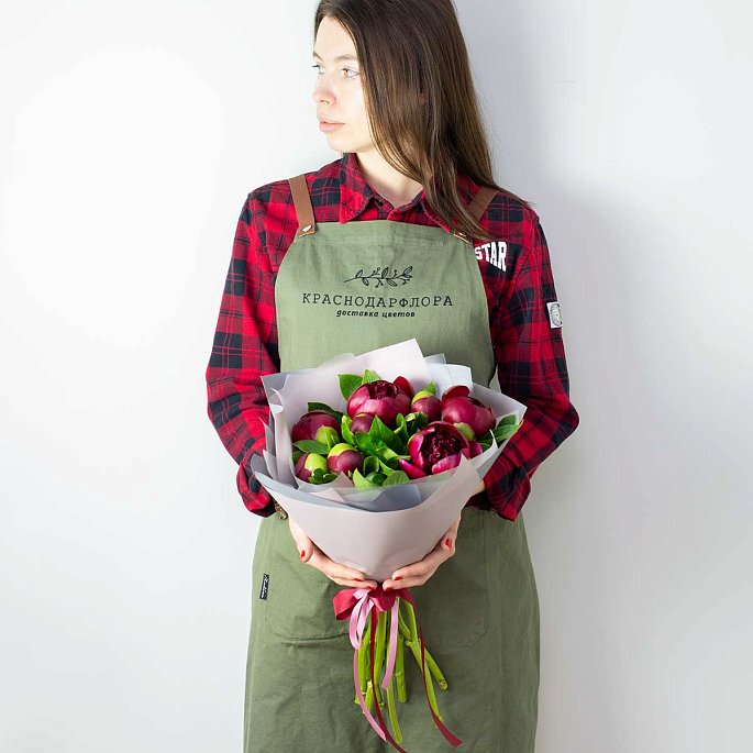 Ура, наконец-то в наличии суперкрупные импортные пионы!Букет из 9 крупных итальянских бордовых пионов "Red Charm"