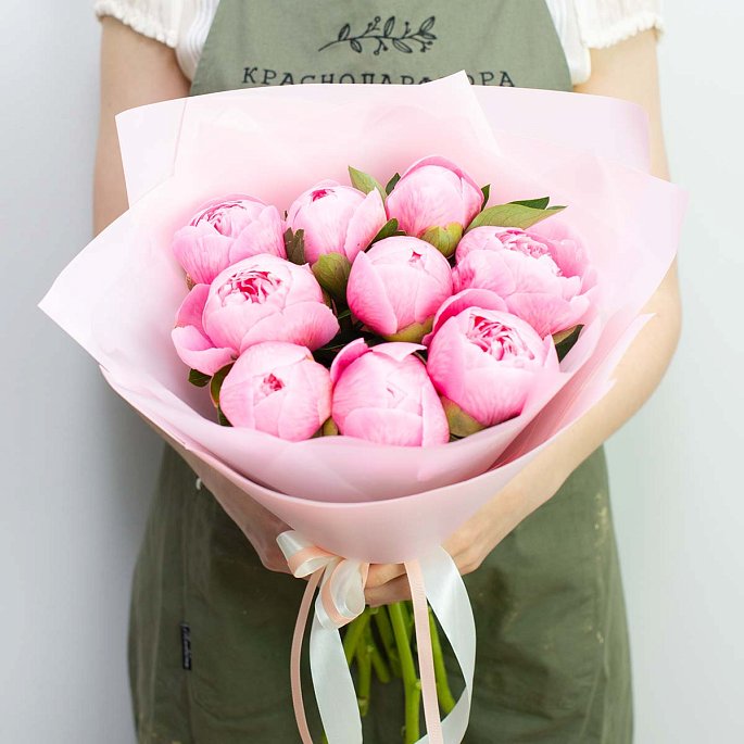 Ура, наконец-то в наличии суперкрупные импортные пионы!Букет из 9 очень крупных итальянских пионов "Etched Salmon"