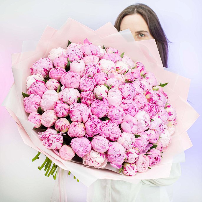Поэтому не стесняйтесь, пусть этот захватывающий букет из 75 пионов говорит о ваших чувствах громче слов. Превратите обычный день в незабываемую память и покажите ей, как много она для вас значит - она заслуживает не меньшего, чем необыкновенное.