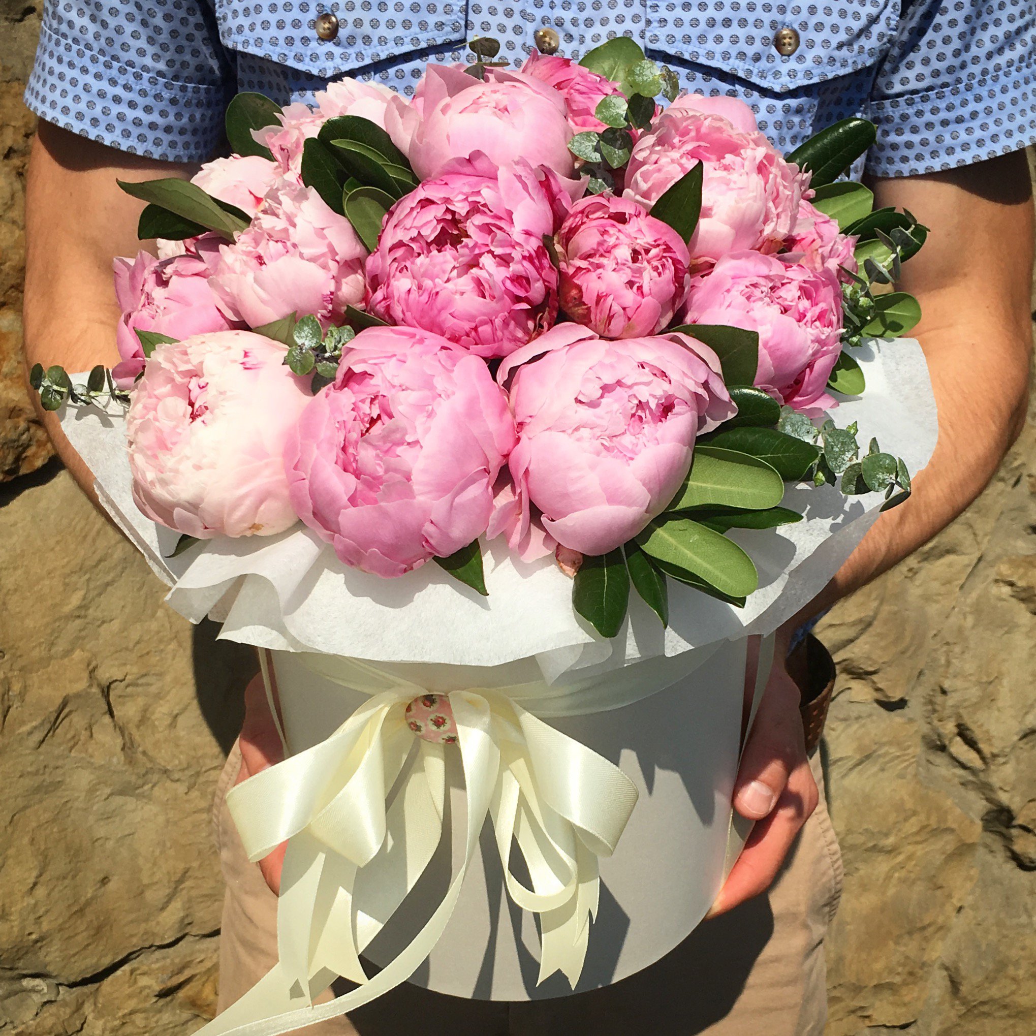 Шляпная коробка с 19 пионами