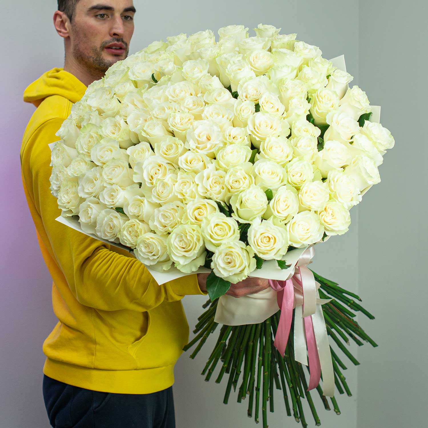 - Роза белая премиум Эквадор, 101 шт.