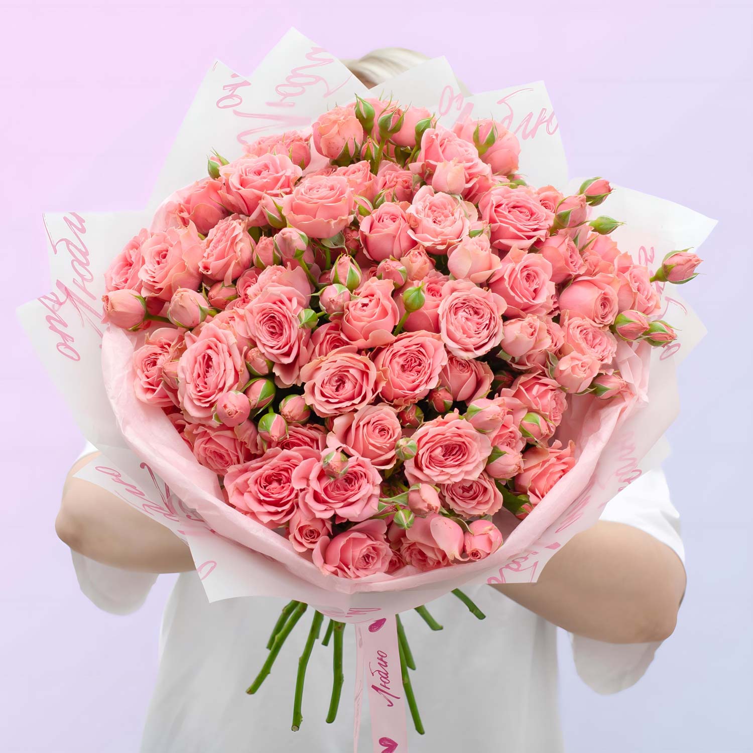 – Говорящая упаковка: Надписи «Люблю тебя» и лента с сердцами делают этот букет готовым признанием в любви — вам даже не нужна открытка;