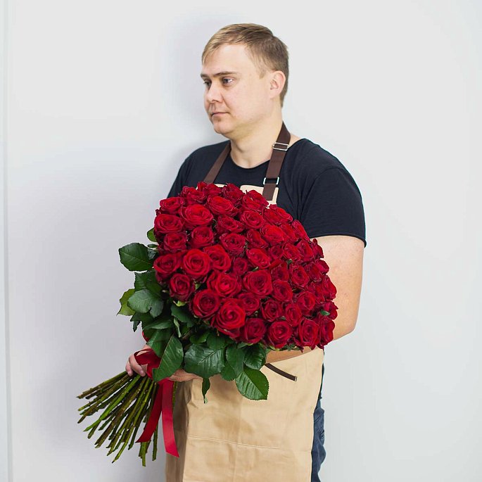 51 красная роза Ред Наоми 70 см