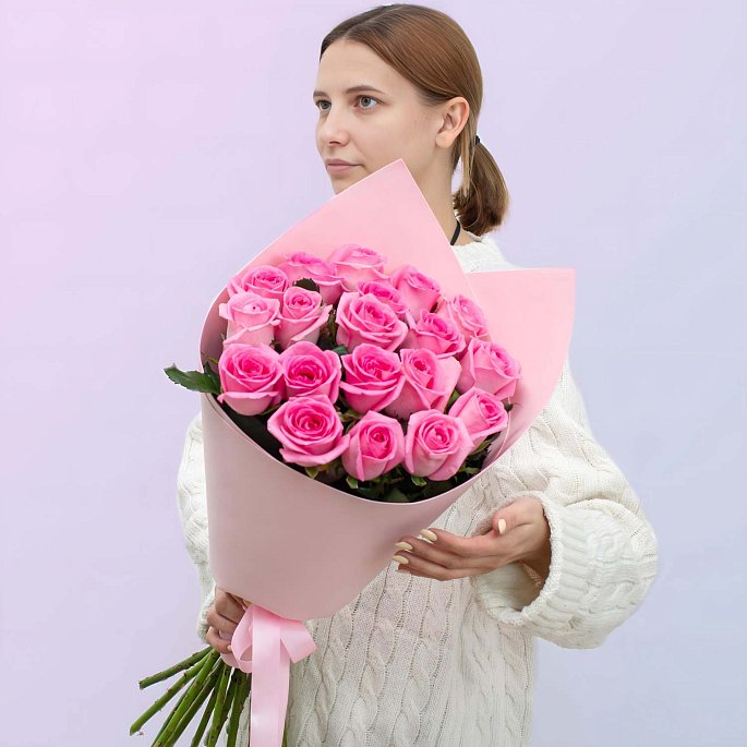 Нежно-розовые розы это классика, которая всегда работает. Подходит для любого повода — от признания в симпатии до подарка коллеге или маме.