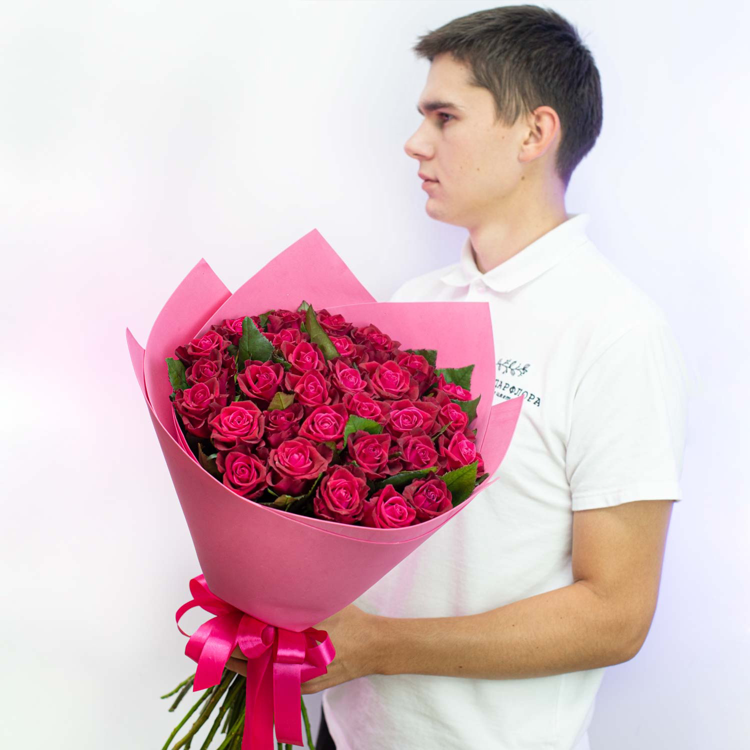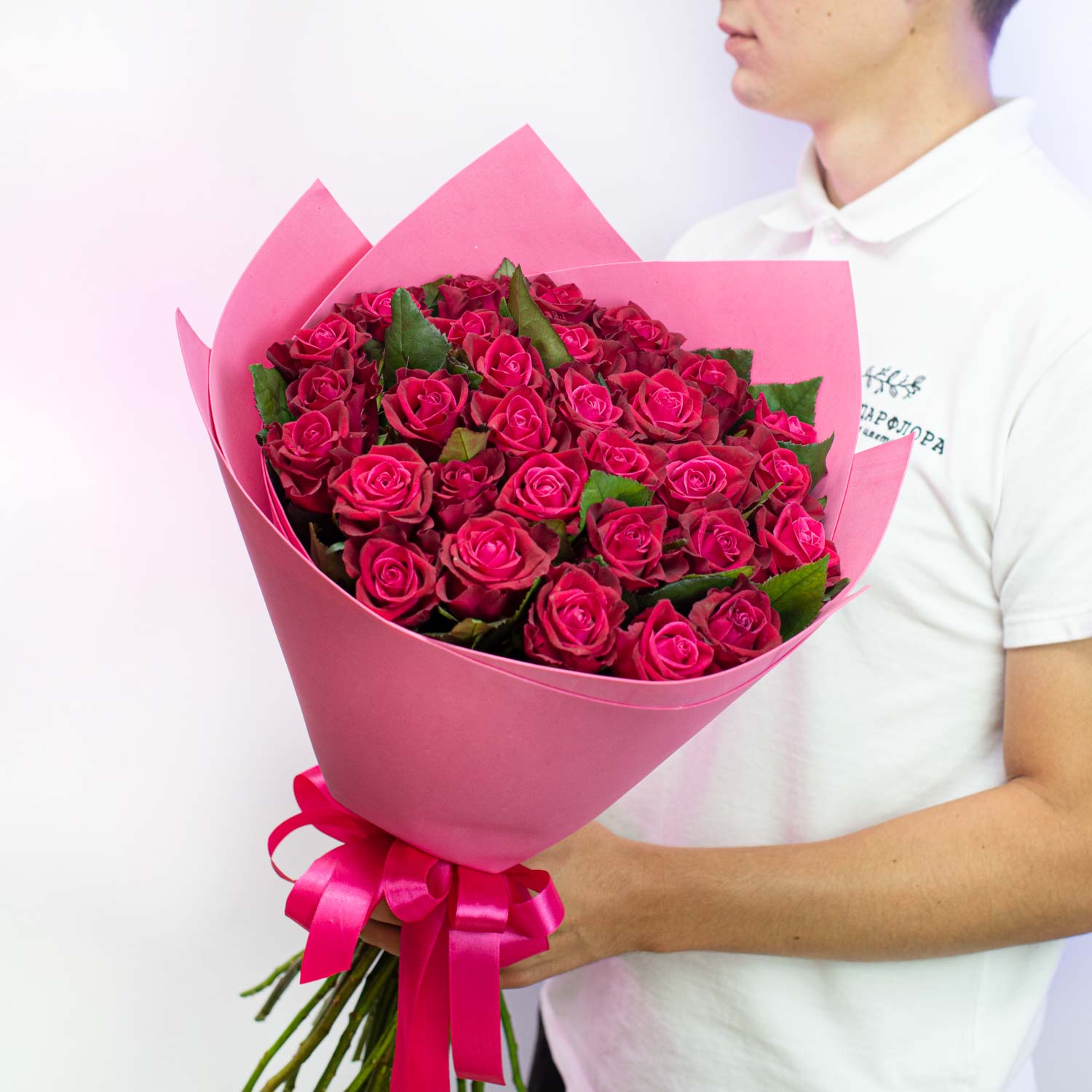 Букет из 29 малиновых роз 60 см "Шангри Ла"