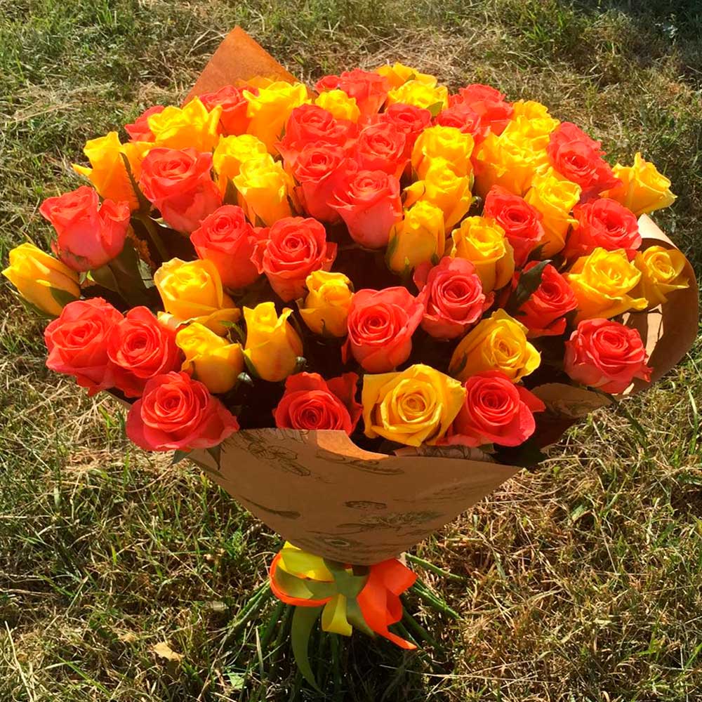 Букет из 61 желтой и оранжевой розы