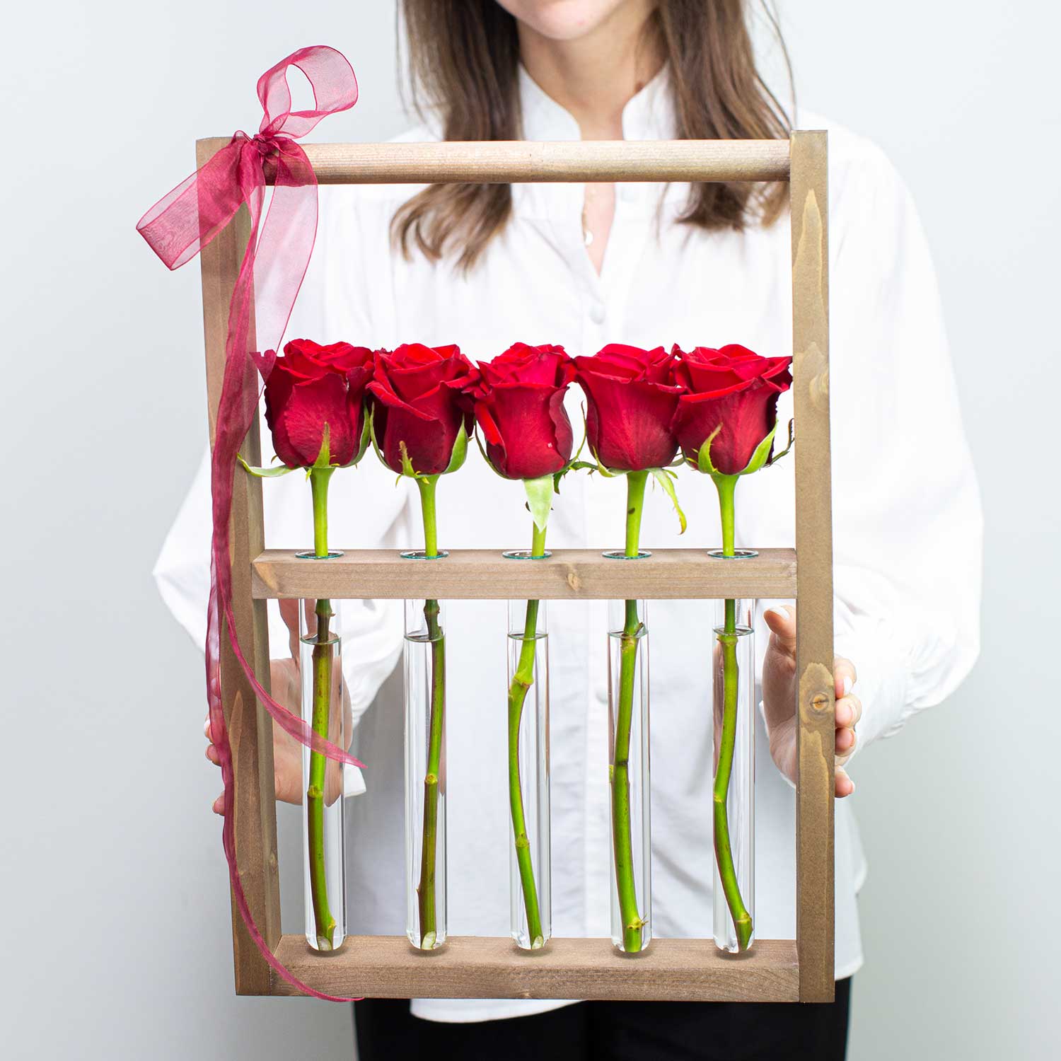 5 роз в колбах